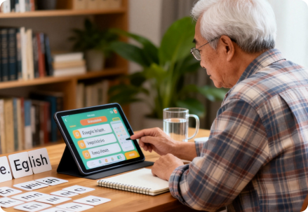 AI 自动生成场景视频,把今天与历史单词混在故事里反复出现。多感官、多轮接触,提高长期记忆保持。